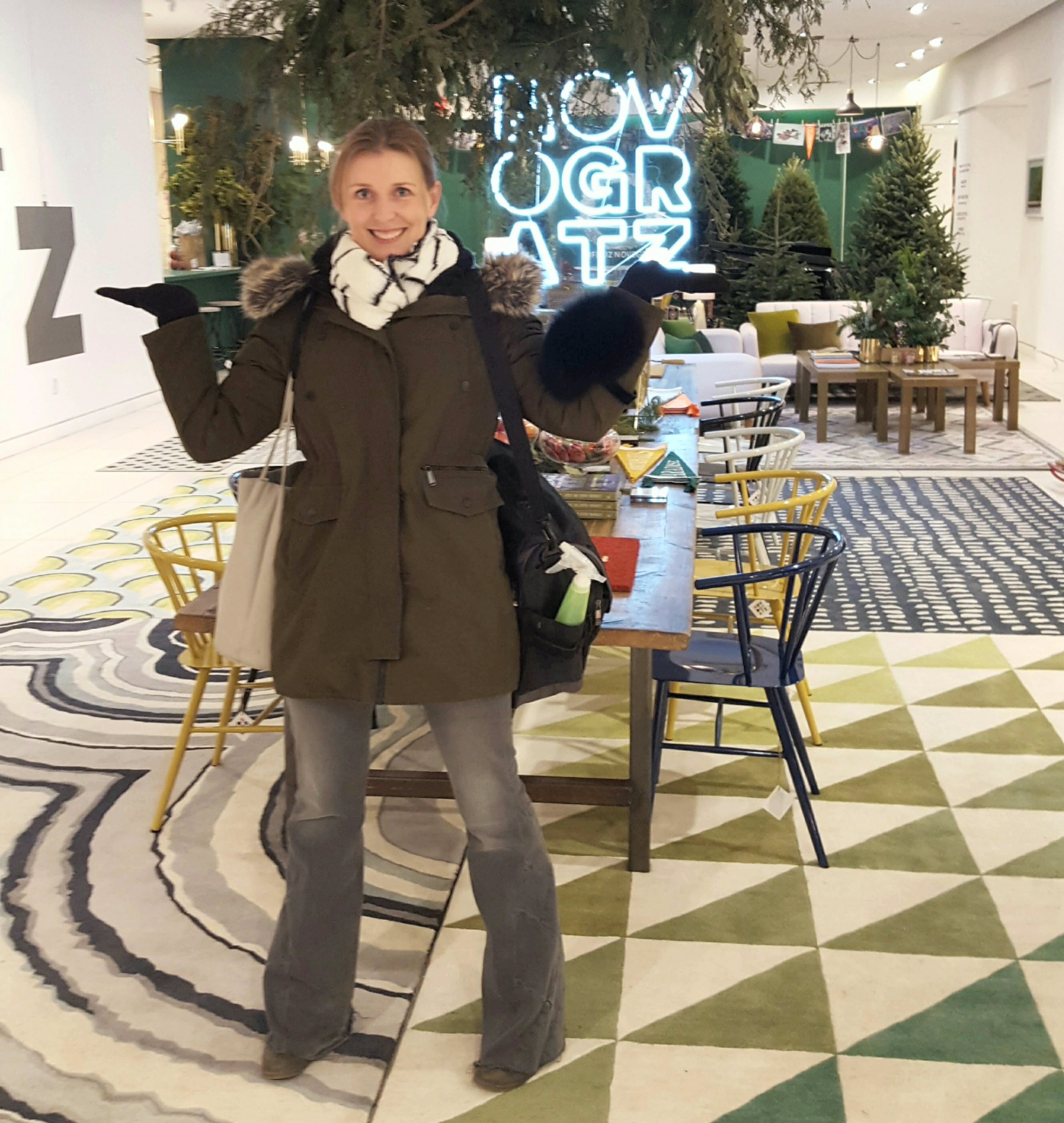 On Thursday, December 14th, I was lucky enough to be part of their month long celebration of design, art, music and good cheer! I spent the day in the shop on 14th Street live painting one-of-a-kind ornaments using my acrylic techniques. A few lucky people were able to take one home, FOR FREE, courtesy of the lovely and generous Novogratz. I also had a larger piece of my work on display and was able to talk art, holidays, and generally just hang in a gorgeous space with cool people for the day! There were musicians on hand with jazzy-seasonal songs, time to hang with Robert Novogratz and Kristine Woodward of the Woodward Gallery as well as all the other staff and visitors! It really was such an awesome experience and feel so lucky to have been a part of it! As it turns out, the Woodward Gallery has held onto the piece I brought down, “Amplified” to be part of their upcoming, so stay tuned to hear more about that!
